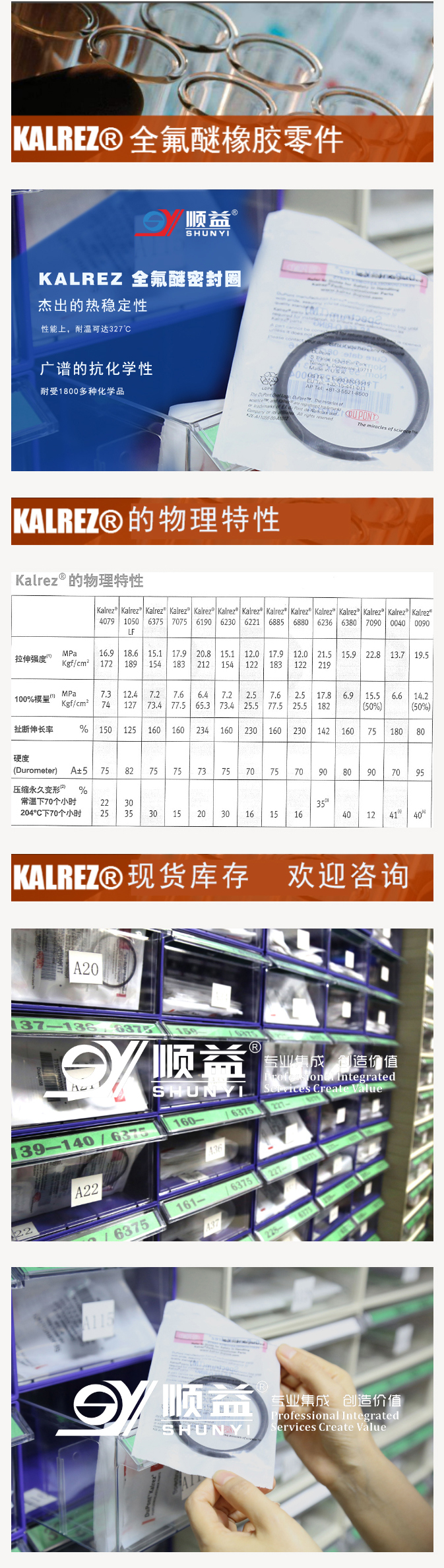 珠海經濟特區順益發展有限公司是Kalrez®在中國大陸的授權經銷商,可以為客戶提供高端的Kalrez®全氟橡膠的產品,依托順益的網絡為客戶提供Kalrez®產品的快速交貨及面對面的及時服務。我們專注于專業的密封服務,在提供密封件產品的同時,可以為客戶提供密封件材質的選擇、溝槽設計和密封件失效分析服務。