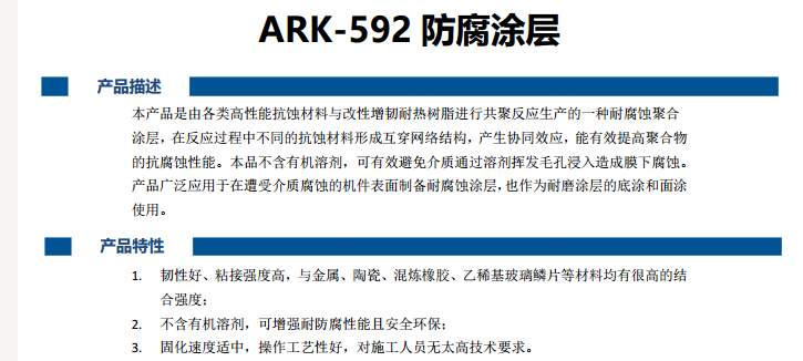 本產(chǎn)品是由各類高性能抗蝕材料與改性增韌耐熱樹脂進行共聚反應(yīng)生產(chǎn)的一種耐腐蝕聚合涂層,在反應(yīng)過程中不同的抗蝕材料形成互穿網(wǎng)絡(luò)結(jié)構(gòu),產(chǎn)生協(xié)同效應(yīng),能有效提高聚合物的抗腐蝕性能。本品不含有機溶劑,可有效避免介質(zhì)通過溶劑揮發(fā)毛孔浸入造成膜下腐蝕。