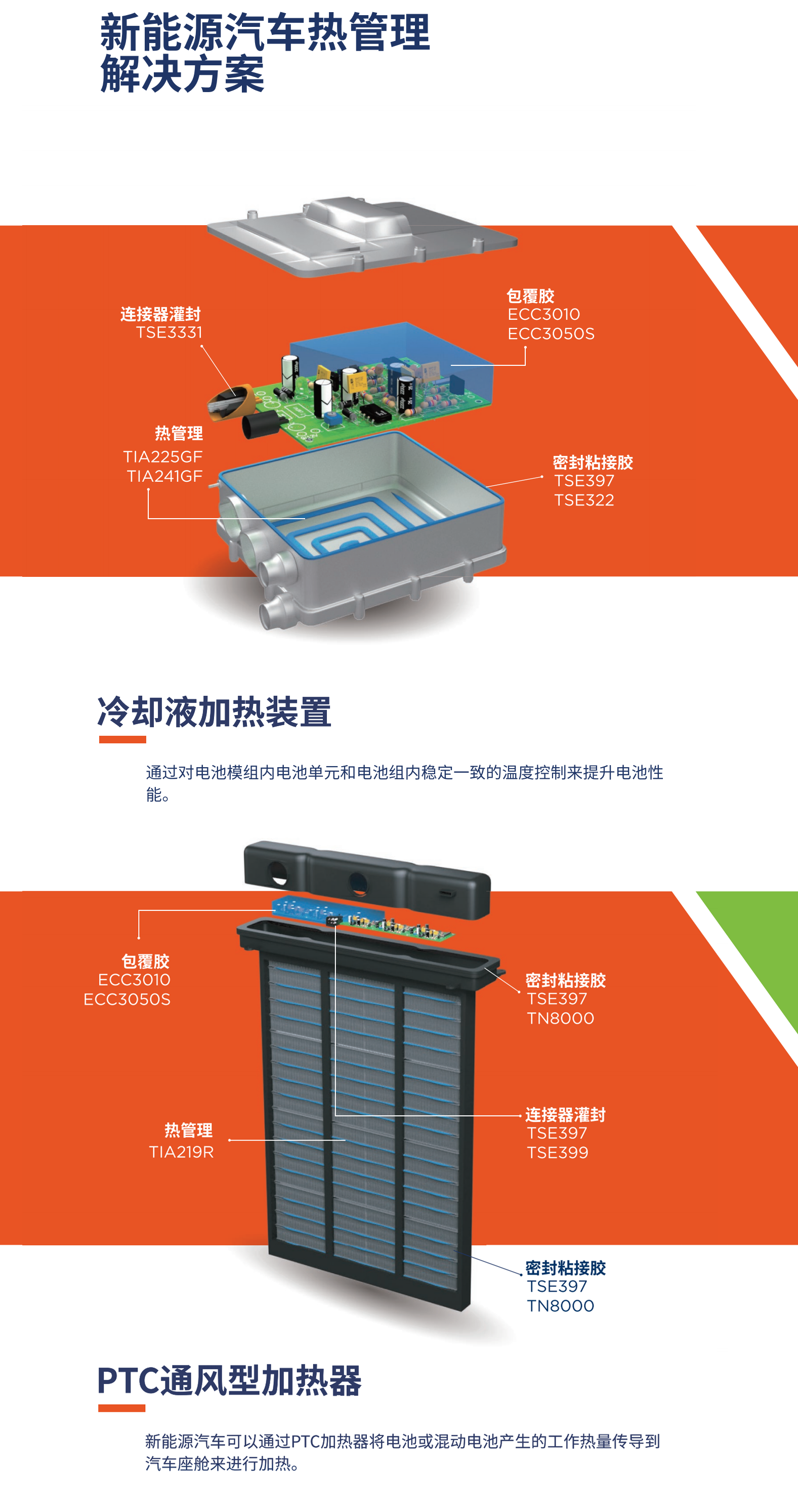 冷卻液加熱裝置:連接器灌封、密封粘接、包覆膠、熱管理。