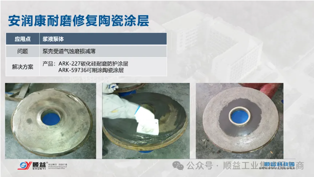 在水泥廠的漿液循環(huán)系統(tǒng)中、礦山的浮選輸送槽里、鋼鐵廠的冶煉設(shè)備中、化工廠的物料輸送系統(tǒng)內(nèi)、電力站的冷卻水循環(huán)系統(tǒng)的裝置上,設(shè)備長(zhǎng)期處于惡劣工況下,泵體、泵殼及管道內(nèi)壁的氣蝕與磨損問題一直是影響生產(chǎn)效率與成本控制的關(guān)鍵因素。面對(duì)這一挑戰(zhàn),順益公司憑借其在材料科學(xué)與表面工程技術(shù)領(lǐng)域的深厚積累,推出了創(chuàng)新性的碳化硅耐磨涂層材料,為設(shè)備的耐磨修復(fù)與翻新提供了革命性的解決方案。