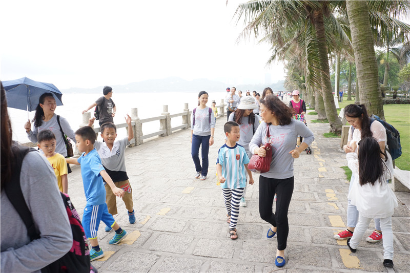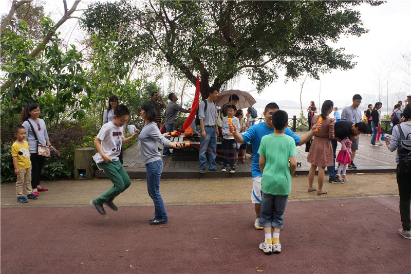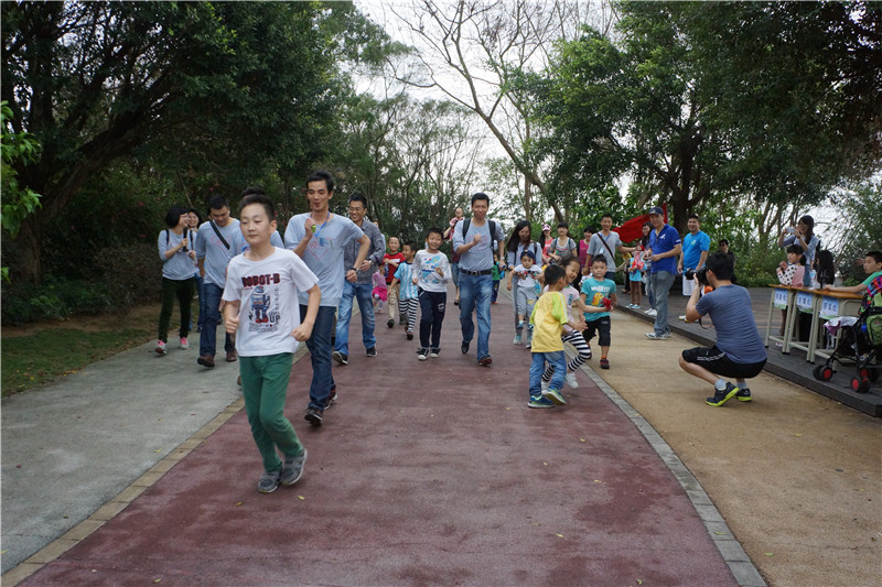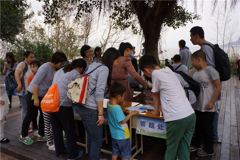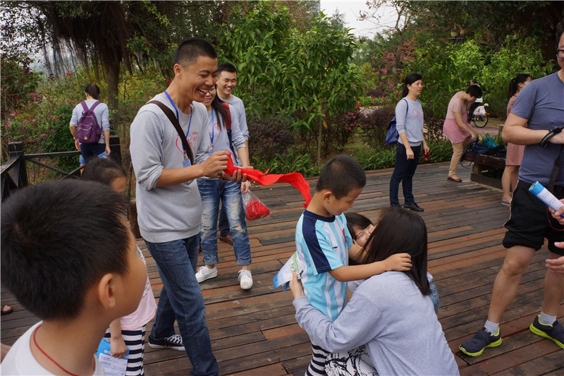 在途中野貍島驛站和終點海天驛站,公司別出心裁的設(shè)置了豐富有趣的親子活動。野貍島驛站內(nèi)設(shè)置了三個活動小組,先到達野貍島驛站的家庭可以到活動小組進行抽簽,按抽到的題目作答,題目的類別有:成年家長題庫、健康生活、綜合知識、消防安全、環(huán)保知識等,每個家庭只有一次抽簽機會,共10道題,每答對一道題獲得一顆星積分。終點海天驛站活動安排了以家庭為單位的親子活動 ,大家以家庭為單位、自行選擇要參加的親子活動如親子踢毽子、雙人跳繩、小腳踩大腳、猜臉等。裁判根據(jù)比賽規(guī)則按家庭的活動結(jié)果獎勵相應(yīng)的星星,并粘貼在積分卡上。整個下午的活動中,大家丟掉憂愁,忘卻煩惱,放下一切,家長在孩子們的歡呼雀躍中仿佛又回到了年少時代。同事之間平時只是限于工作之中的簡單交流,此時大家覺得忽然間距離近了,都有種說不出的興奮、開心,聊不完的話題。