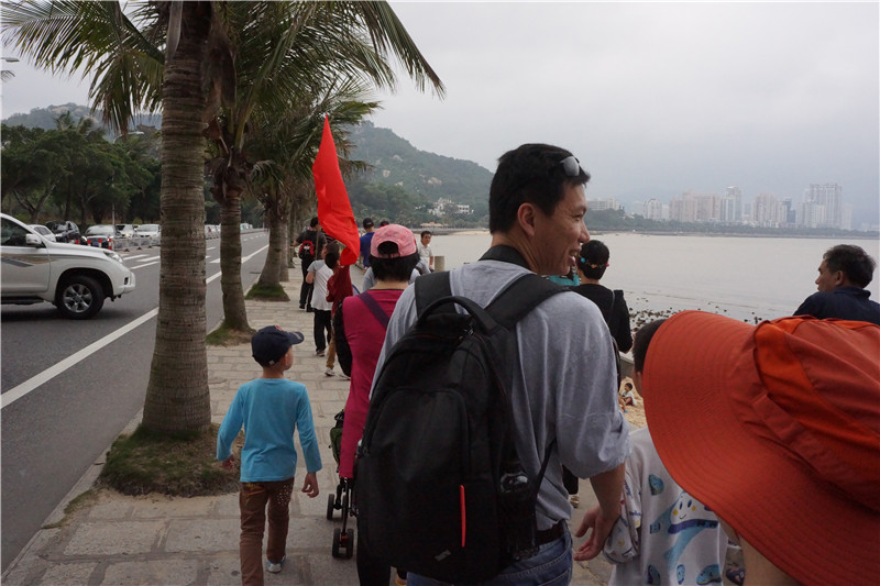 全體成員在活動宣誓之后,14:30分徒步正式開始。活動起點集合在海濱公園情侶中路附近的停車場,延海邊一直走,途徑野貍島驛站、終點為海天驛站,單程合計 5.3 公里,步行約1小時。