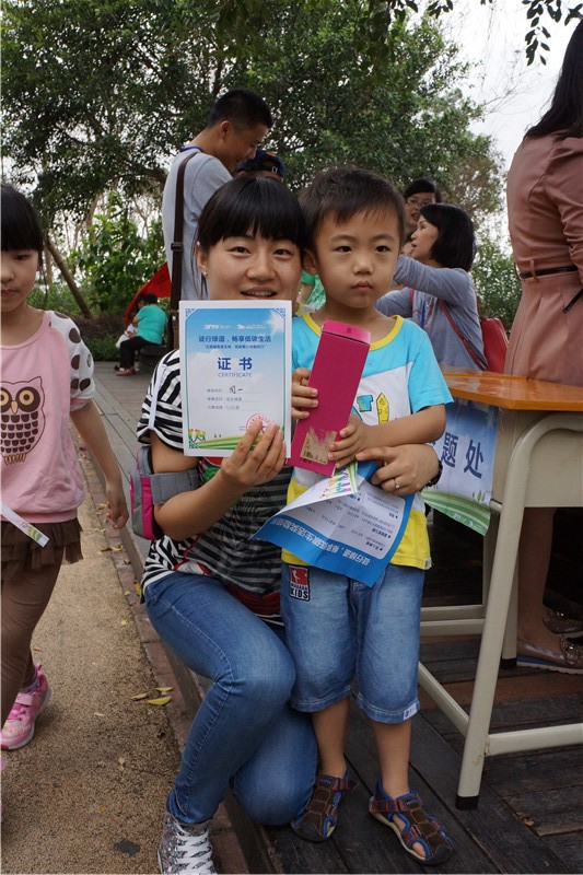 最后,在大家熱烈的掌聲中,各家庭根據(jù)活動累積的積分卡的分數(shù)到頒獎臺獲取到了相應(yīng)的精美獎品,同時凡是全程徒步到達終點的小朋友均獲得了紀念證書一份,將整個氣氛推向高潮。