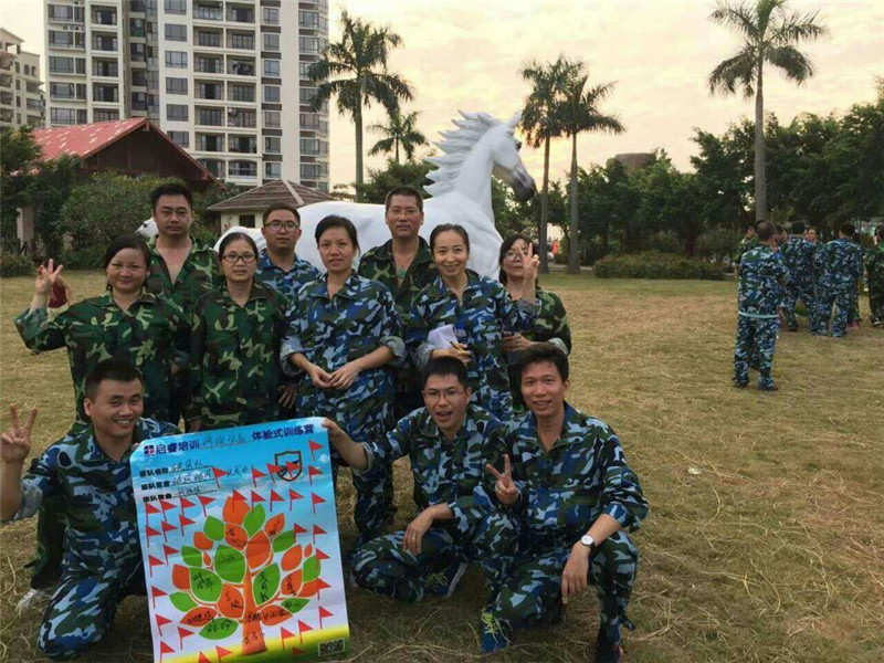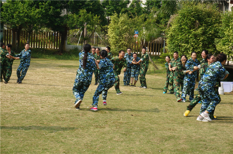 戶外拓展培訓在珠海平沙騎馬場拓展基地進行,分別有“漢諾塔”,“盲人方陣“,”撕名牌“,珠行萬里”,“瘋狂市場”,“鼓動人心”“團隊能量圈”等項目。