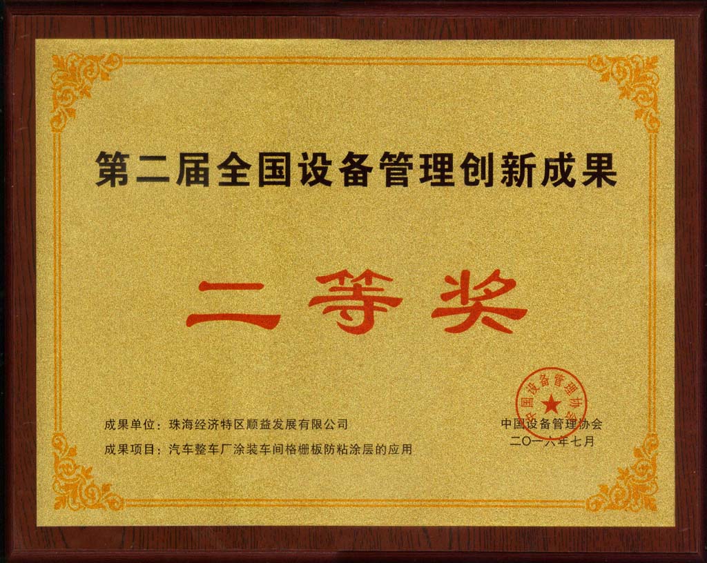 順益體系(集團)《工業4.0時代機器人減速機的技術發展及潤滑淺談》、《汽車整車廠涂裝車間格柵板防粘漆涂層的應用》分別榮獲第二屆全國設備管理創新成果二等獎