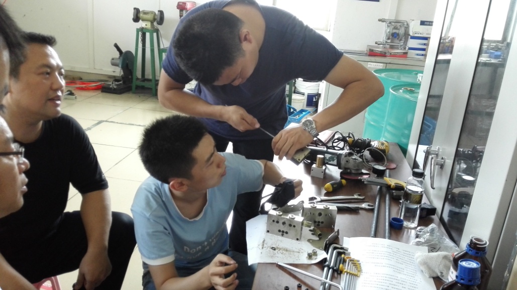 歷時(shí)兩天的威潤瑪潤滑設(shè)備技術(shù)交流培訓(xùn)活動(dòng)7月19日圓滿結(jié)束,來自廣州厚誠潤滑油有限公司的技術(shù)服務(wù)工程師與威潤瑪工業(yè)設(shè)備制造有限公司的生產(chǎn)技術(shù)工程師通過專業(yè)技術(shù)交流、現(xiàn)場實(shí)際操作、模擬故障排除、設(shè)備調(diào)試安裝等項(xiàng)目進(jìn)行了互動(dòng),進(jìn)一步提升了威潤瑪潤滑設(shè)備的產(chǎn)品品質(zhì)和強(qiáng)化了威潤瑪潤滑設(shè)備現(xiàn)場服務(wù)能力。
