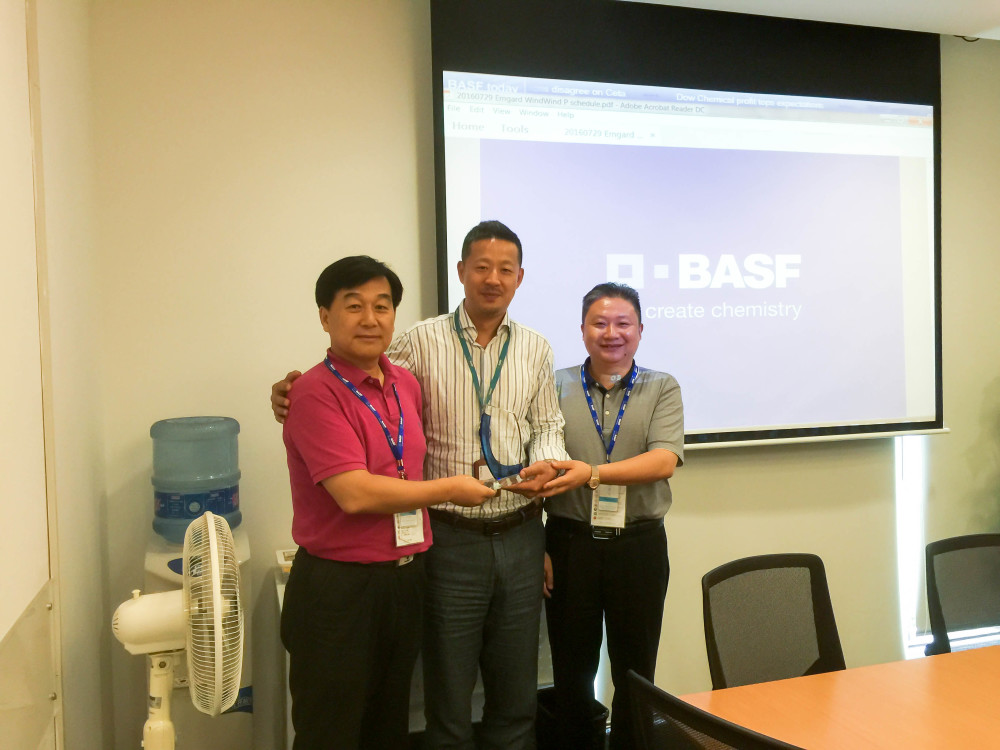 巴斯夫(中國(guó))有限公司業(yè)務(wù)管理總監(jiān)楊延?xùn)|先生為順益體系(集團(tuán))總裁張建新先生及四川分公司總經(jīng)理胡曉東先生頒發(fā)“巴斯夫2015年度最佳經(jīng)銷商”獎(jiǎng)