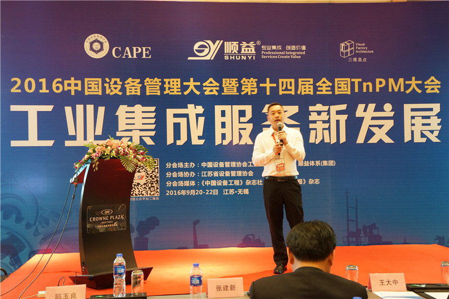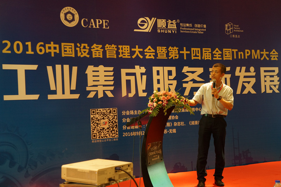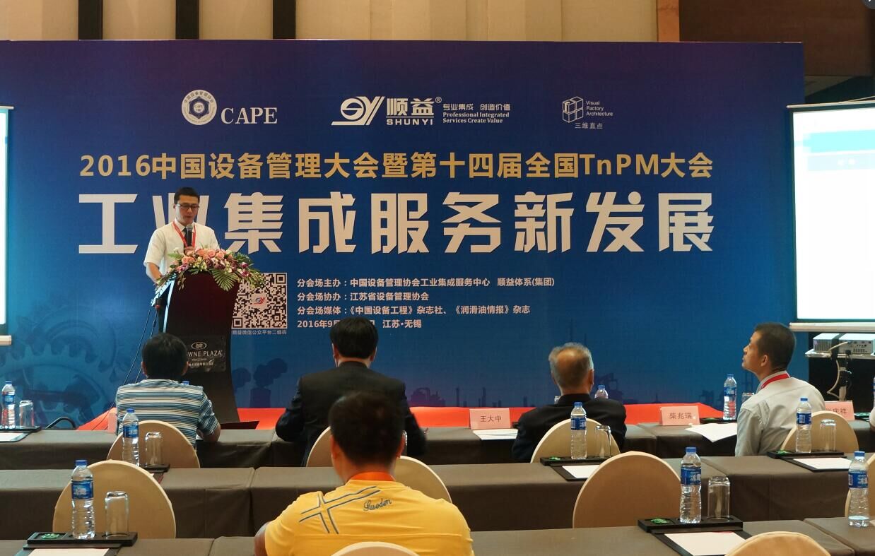 面對諸多問題,2016年9月21日下午,由中國設備管理協會工業集成服務中心、工業集成服務領域的標桿企業順益體系(集團)承辦、江蘇省設備管理協會協辦的首屆中國設備管理大會“工業集成服務新發展專場”在第三分會場進行。分會場邀請了工業集成服務、合理潤滑、空壓機節能、云技術、狀態監測、表面工程等諸多領域的專家,與參會人員分享工業集成服務的新技術與實踐經驗。