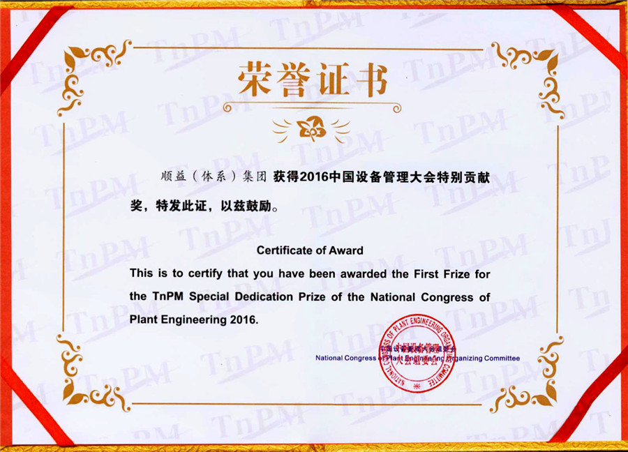 大會現場還頒發了中國TnPM設備管理功勛獎、杰出領袖獎、優秀企業獎,2016中國設備管理大會特別貢獻獎、中國TnPM設備管理創新獎、發言嘉賓獎座。作為本次大會承辦方的順益體系(集團)榮獲了TnPM特別貢獻獎!順益體系(集團)總裁張建新榮獲“演講嘉賓”獎座。現場氣氛熱烈!