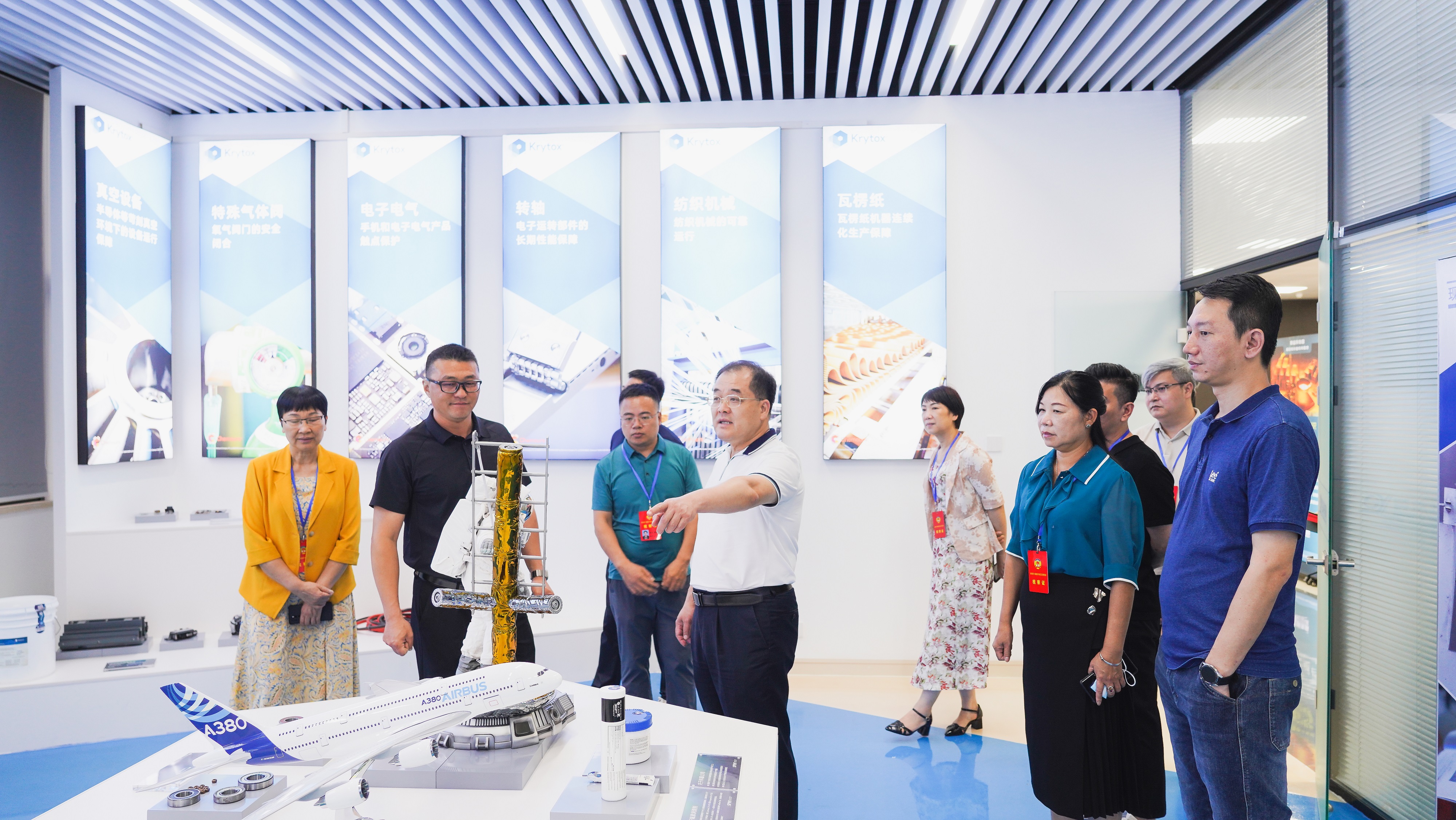 隨后,到訪人員先后參觀了順益科技園表面處理實驗中心、德國漢高樂泰體驗中心、工業集成服務展示體驗中心、Krytox高性能潤滑劑應用展示廳、特種功能涂層材料應用展示廳、高性能彈性體及塑料應用展示廳、新能源汽車新材料應用展示廳及順益科技園新材料科普教育基地等地,并觀看順益科技園的相關視頻,更加深入地了解了順益科技園的發展方向以及科技創新應用能力。