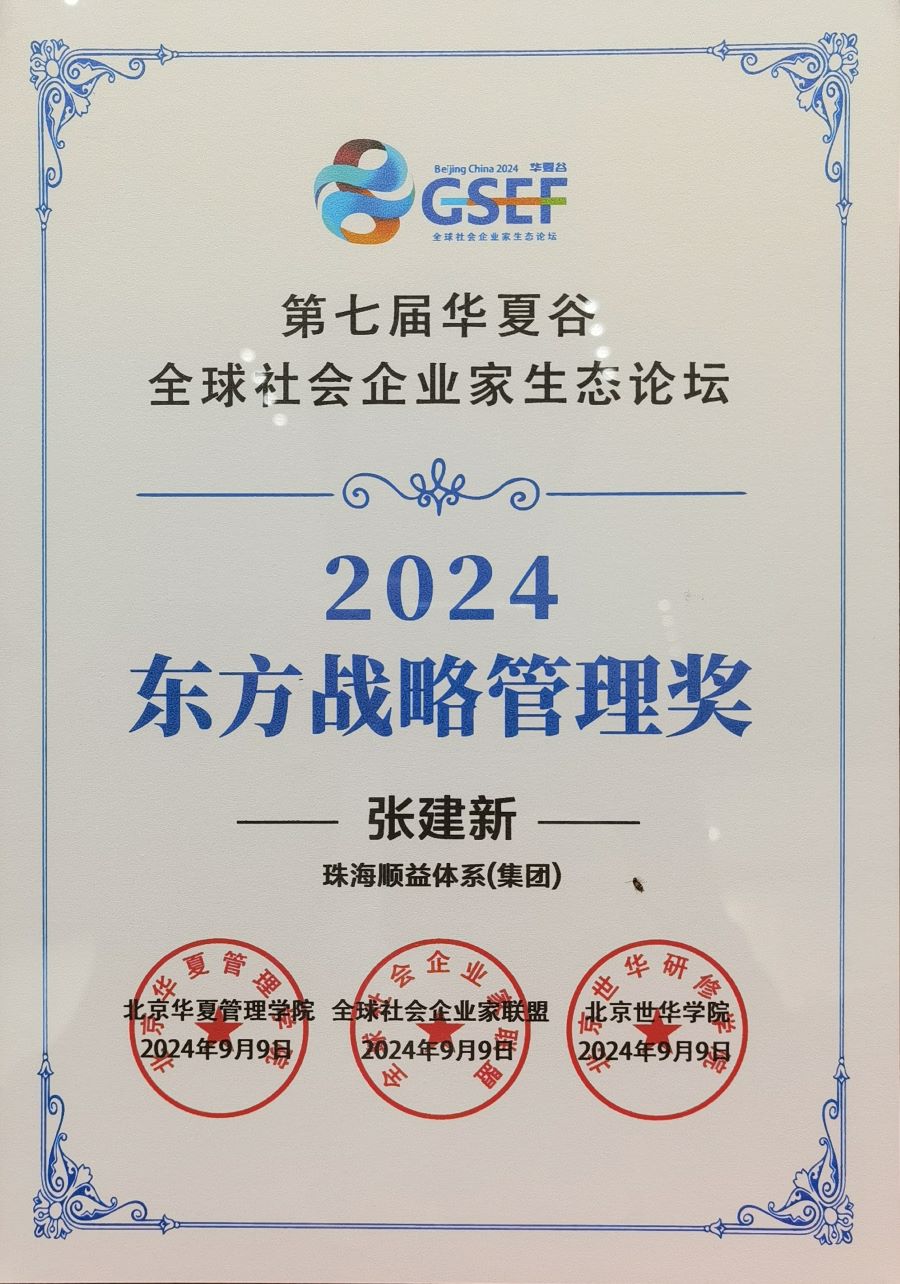 論壇期間,主辦方設立了表彰環(huán)節(jié),對在履行社會責任、推動企業(yè)創(chuàng)新、賦能民營經(jīng)濟等方面做出杰出貢獻的社會企業(yè)家和機構(gòu)給予了高度認可與表彰。其中,順益體系(集團)董事長張建新先生憑借其卓越的領(lǐng)導力和深遠的戰(zhàn)略眼光,榮獲了“2024東方戰(zhàn)略管理獎”,這不僅是對其個人成就的肯定,更是對所有致力于社會事業(yè)、勇于擔當社會責任的企業(yè)家的鼓舞與激勵。