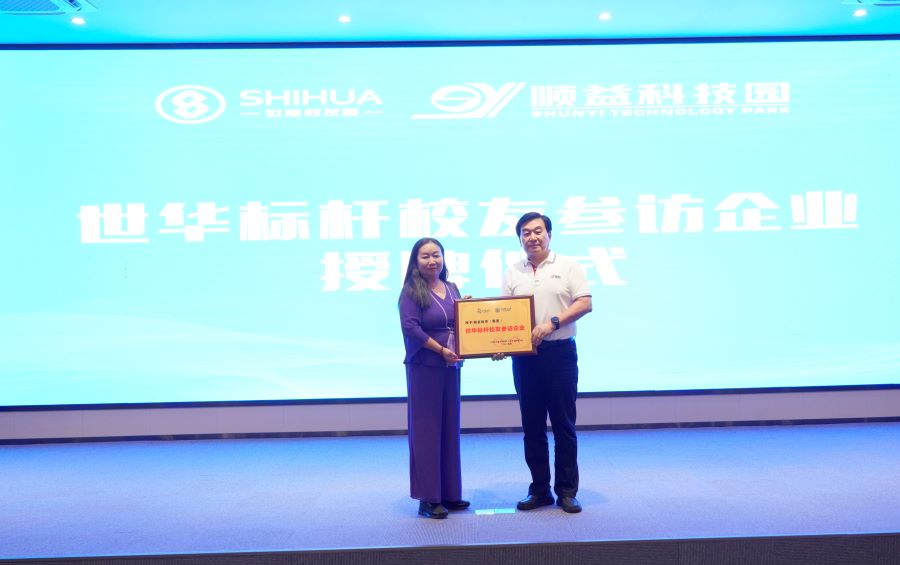 活動同期舉行世華標桿校友參訪企業、東方戰略管理獎授牌儀式,世華廣東公司總經理李東莉為順益體系(集團)董事長張建新頒獎。
