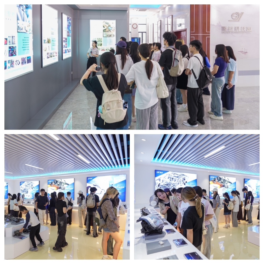 師生們先后參觀了工業(yè)集成服務(wù)展示體驗中心、新材料新應(yīng)用實訓(xùn)基地、工業(yè)領(lǐng)域耐磨修復(fù)中心、自潤滑材料應(yīng)用測試中心、表面處理實驗中心、噴涂實驗中心、實驗檢測中心、臺架試驗中心、德國漢高樂泰體驗中心、Krytox高性能潤滑劑應(yīng)用展示廳、特種功能涂層材料應(yīng)用展示廳、高性能彈性體及塑料應(yīng)用展示廳、新能源汽車新材料應(yīng)用展示廳、順益科技園新材料科普教育基地等多個重要區(qū)域。全方位了解了工業(yè)集成服務(wù)與新材料應(yīng)用的前沿成果。