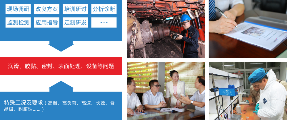 在潤滑、膠粘、密封、表面處理等領(lǐng)域,我們一直致力于“為企業(yè)提供合理潤滑密封集成系統(tǒng)解決方案”,通過現(xiàn)場調(diào)研、診斷分析、改良方案、培訓(xùn)講座、專題研討、應(yīng)用指導(dǎo)等“專科醫(yī)生式”的服務(wù)模式,協(xié)助企業(yè)解決潤滑、密封等領(lǐng)域的“疑難雜癥”,從而保障設(shè)備運(yùn)行,降低生產(chǎn)成本,提升產(chǎn)品品質(zhì),提高綜合經(jīng)濟(jì)效益,為社會節(jié)能降耗。